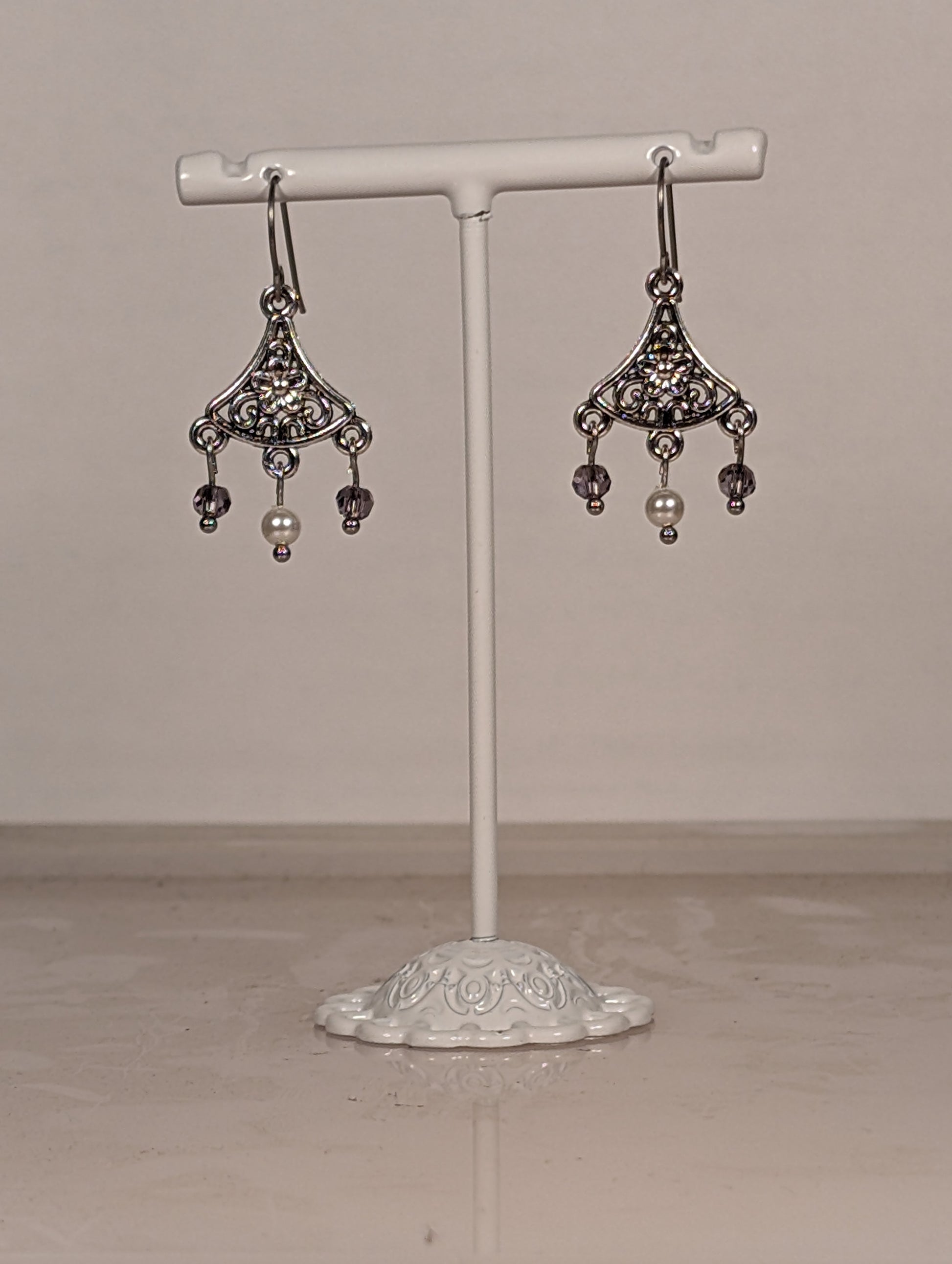 Daisy mix earrings with shell pearls and Chinese crystal.