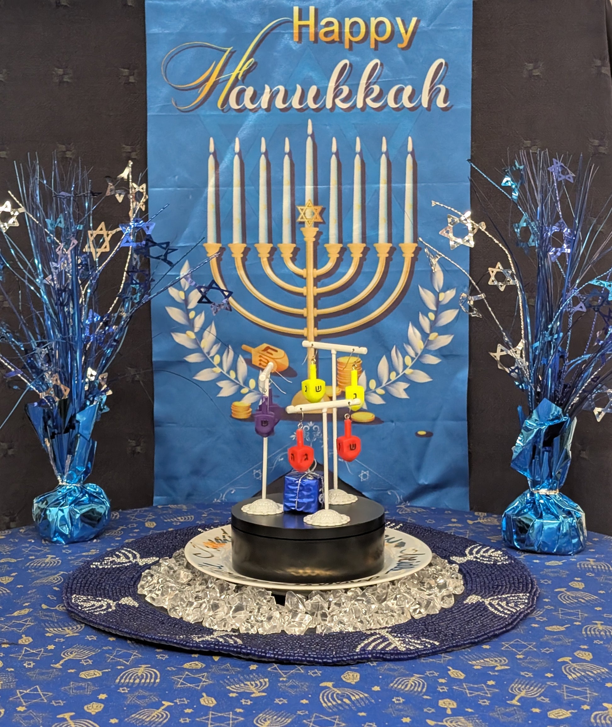 Bright Festive Colors — Blue, Orange, Red, Purple, Yellow and Green — symbolizing the joyful nature of Hanukkah.