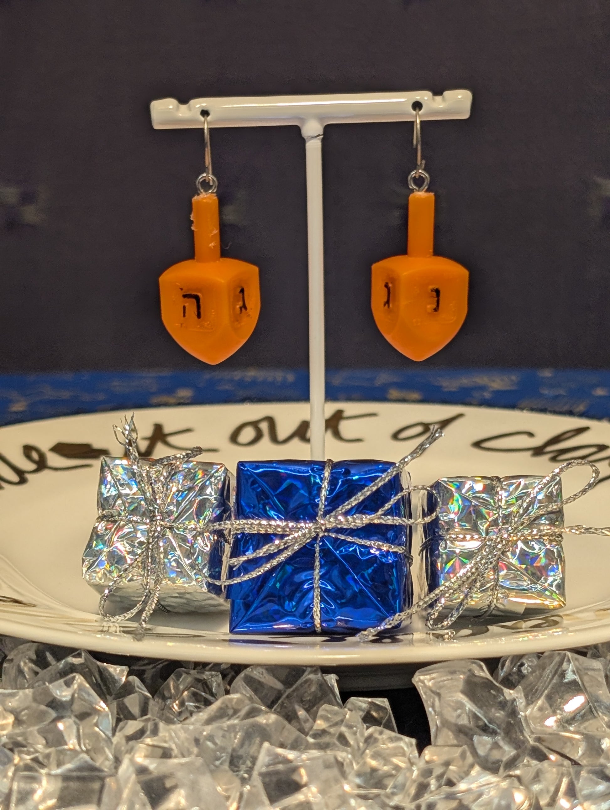 These earrings are both symbolic and decorative, celebrating the joy of Hanukkah.