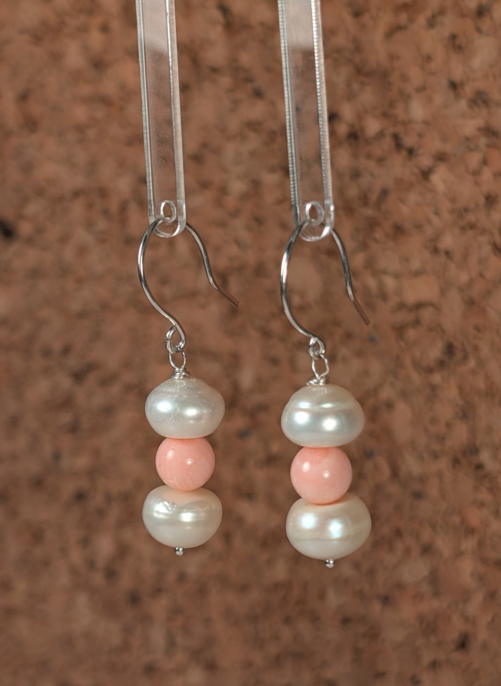 Freshwater Pearls and Salmon Skin Coral Earrings FE6