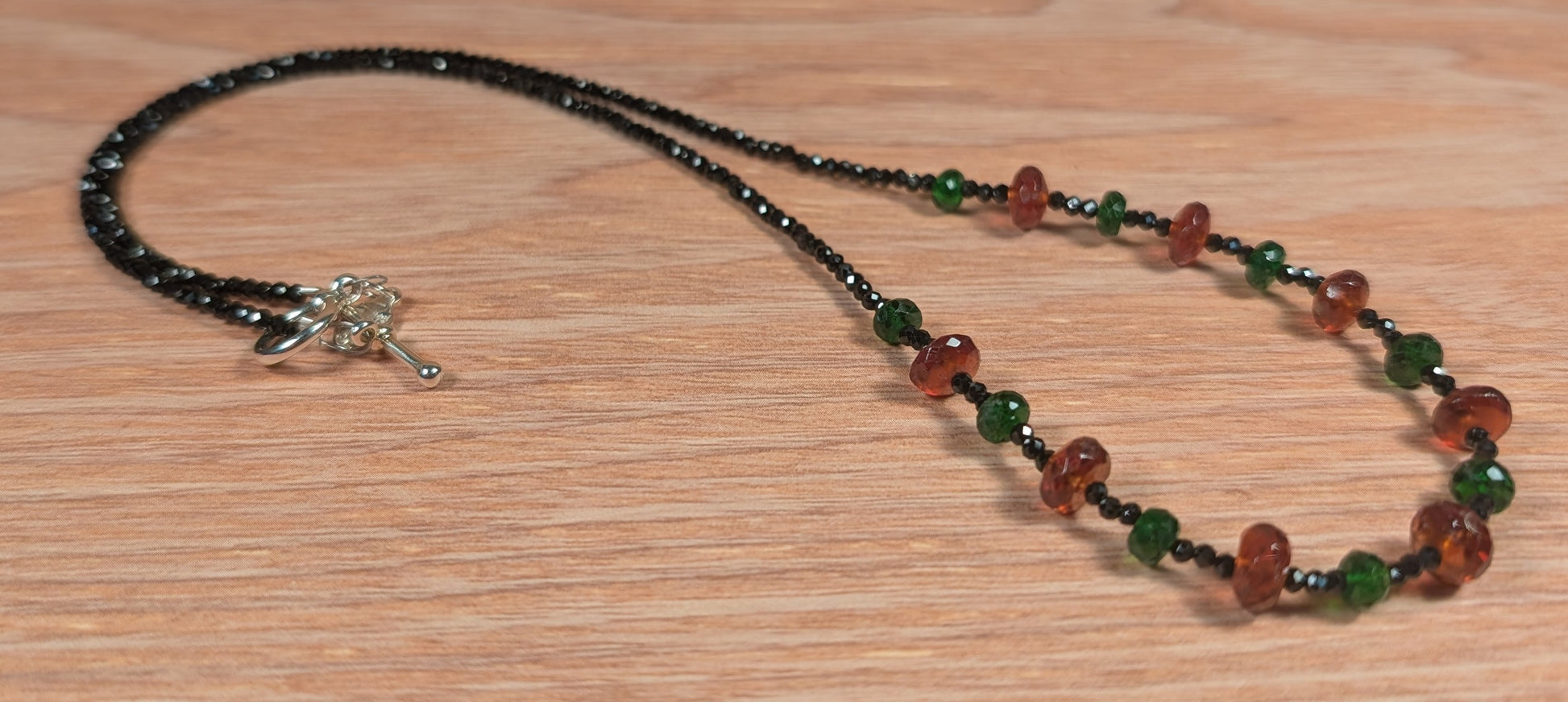 Hessonite Garnet, Chrome Diopside and Black Spinel Necklace FN14